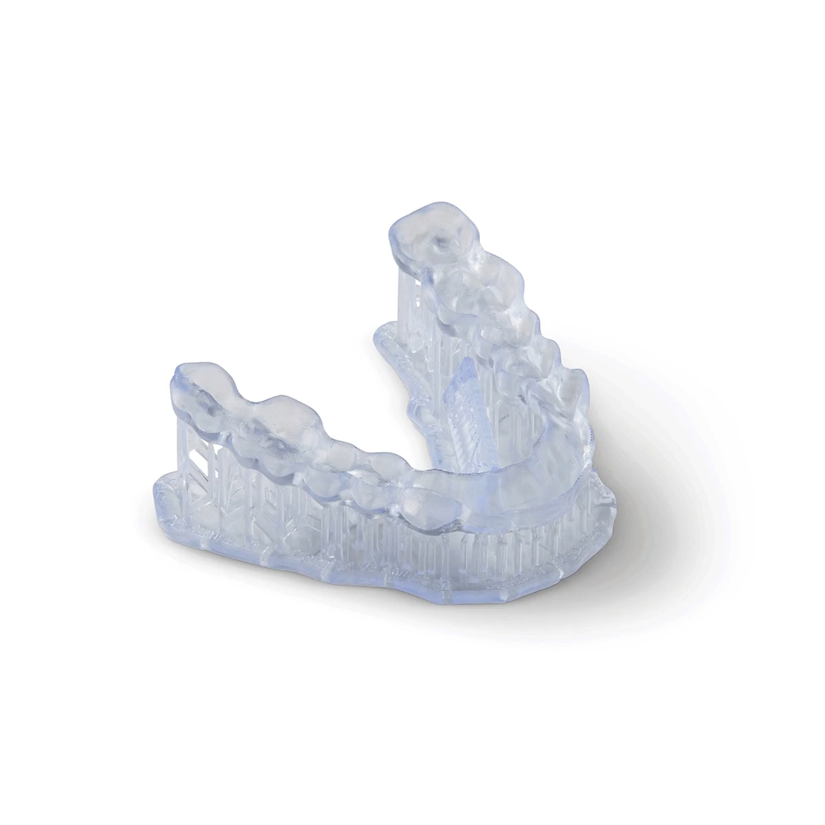 打印时间:48分钟厚度:0.1毫米一种用于硬夹板和咬合护罩的长期生物相容性材料。使用牙科抗撕裂透明树脂在内部直接打印价格合理、高质量的咬合夹板。这种色彩校正材料高度耐用,抗断裂,打印清晰,抛光到高光学透明度,并可抵抗随着时间的推移而变色,您将自豪地交付的成品护具。