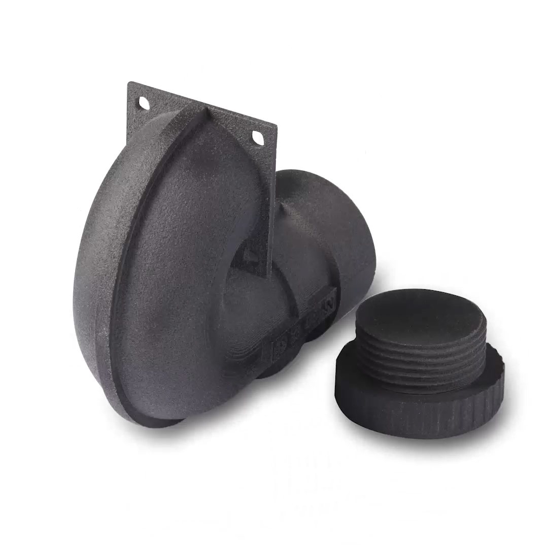 一种玻璃纤维填充材料,具有增强刚度和耐热性,适用于苛刻的工业环境。选择PA12 GF 强化尼龙粉来生产功能性原型或最终使用零件,用于结构刚度和热稳定性至关重要的应用。这个U形管道突出了PA12 GF 强化尼龙粉末在热流体/气流应用中的刚度和兼容性,以及由于盖子完美地拧入零件,其尺寸精度。