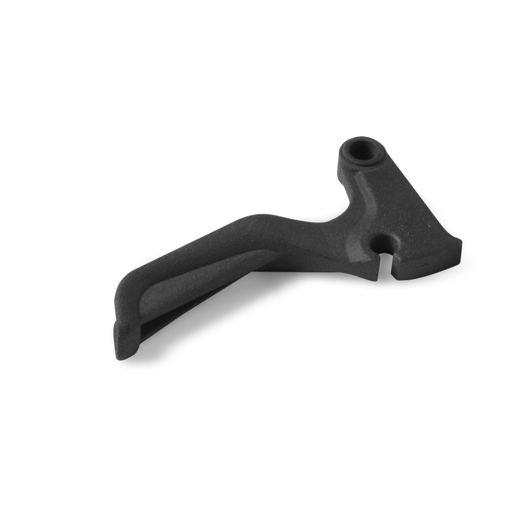 使用这种坚韧而轻质的材料获得最好的尼龙和碳纤维多合一性能,非常适合需要卓越刚度和强度的高性能应用场景。选择PA11 CF 强化尼龙粉末来生产结构和热稳定并能承受反复冲击的轻质零件。这款自行车杠杆重量仅为8克,突出了这种材料的轻盈、刚性和韧性如何适合制动等重复功能。*材料特性可能因零件设计和制造实践而异。制造商有责任验证打印零件是否适合预期用途。