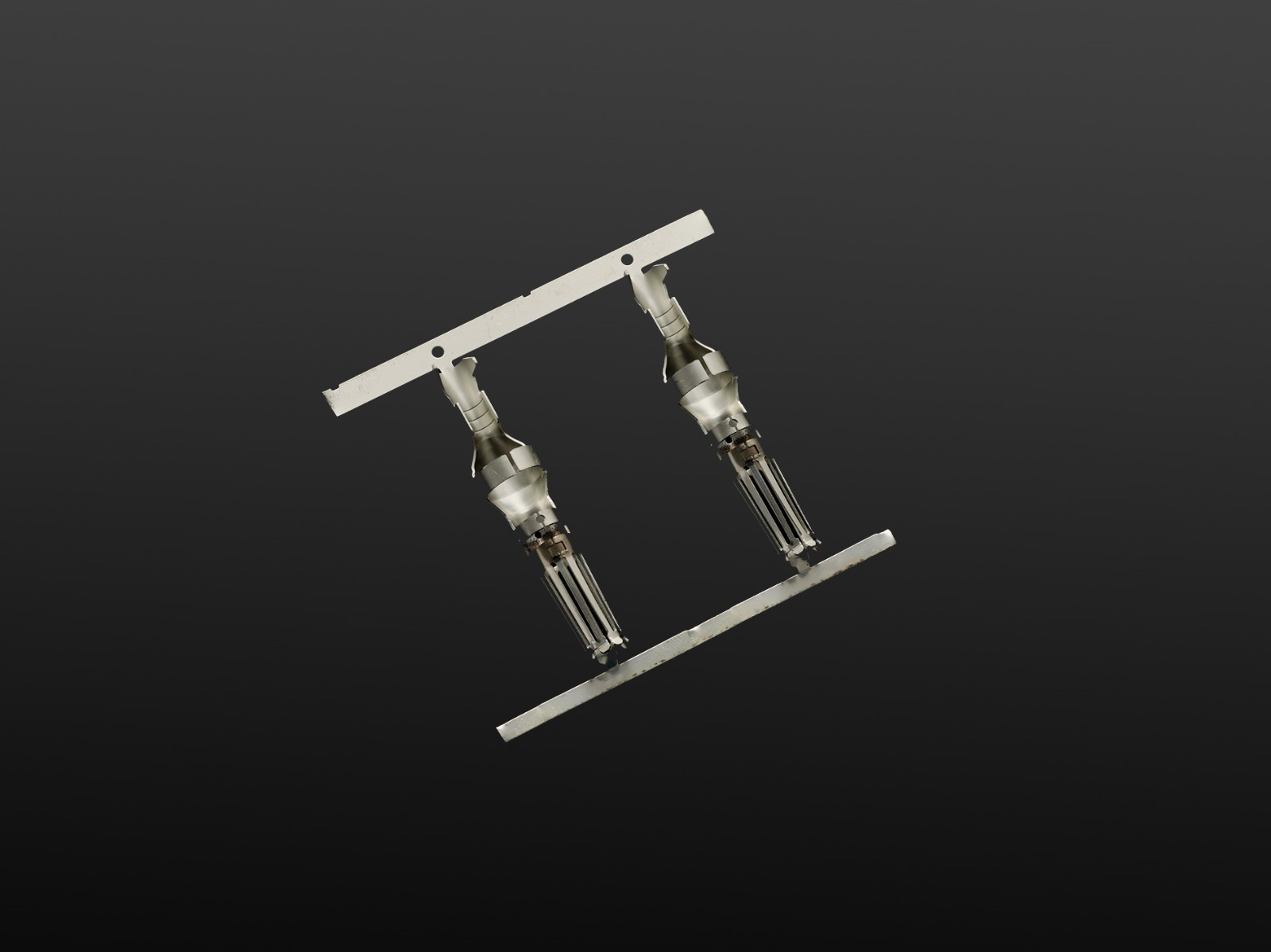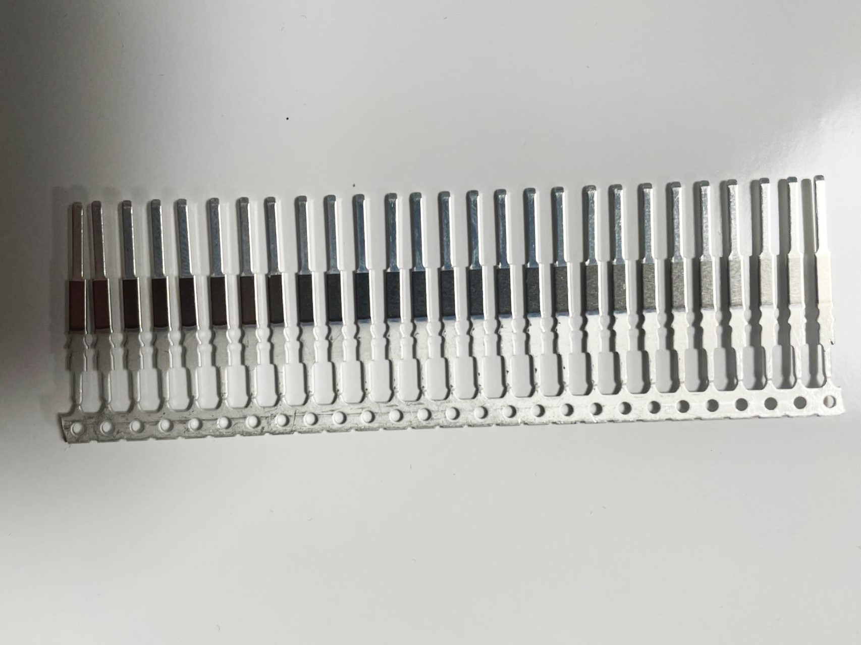 高频连接器的插针插孔,接触部分镀银以确保信号完整性,安装部分镀锡以利于焊接。