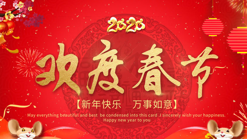 合家欢乐!我司春节放假时间为:2020年1月19日-2020年2月2日,2020年2月3日(正月初十)正式开工!
