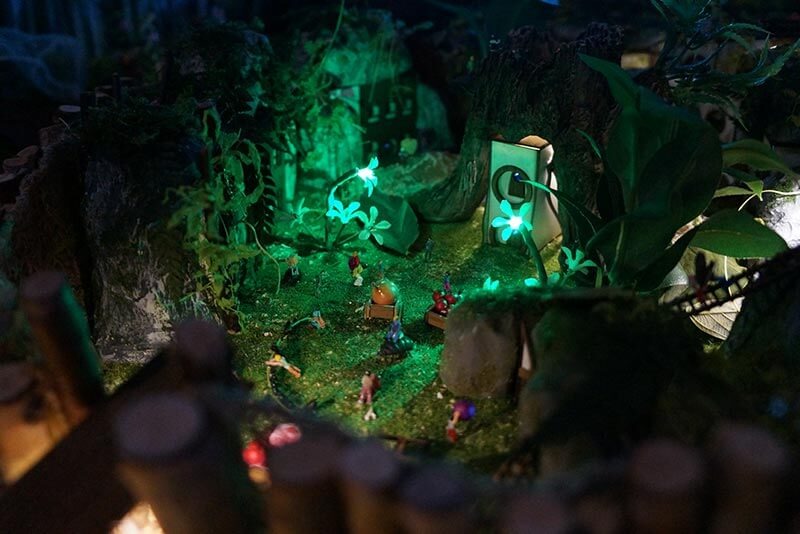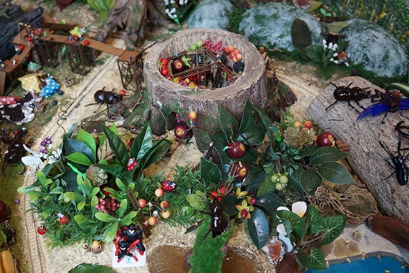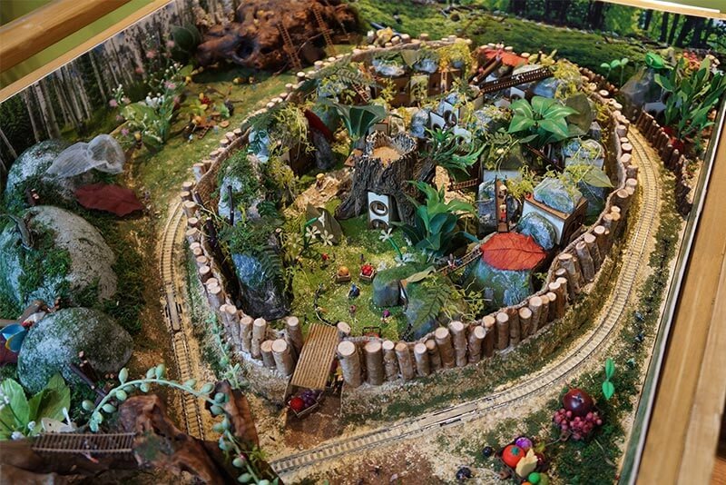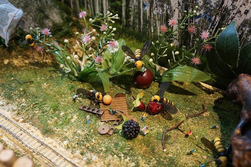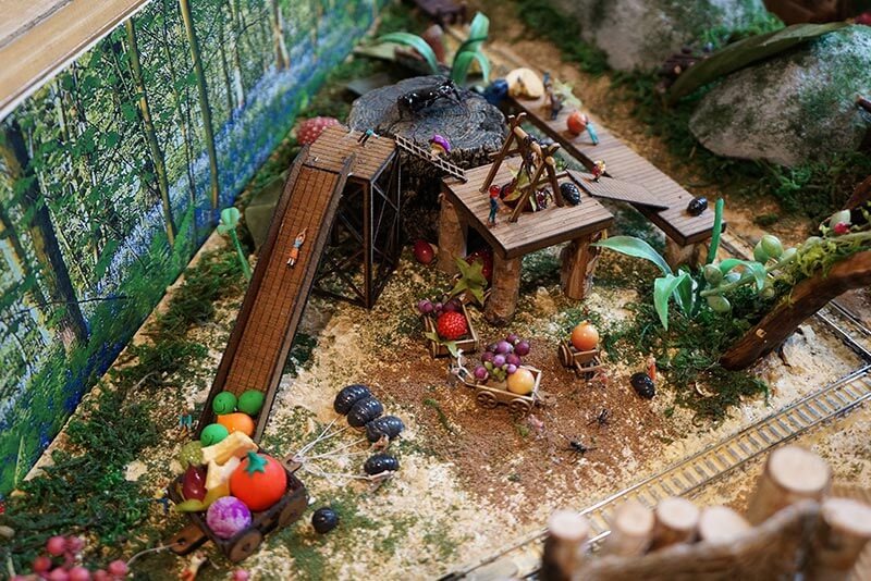 人物和火车的比例为1/150,昆虫和花朵则几乎是实物大小,真实地表现了小矮人的生活。