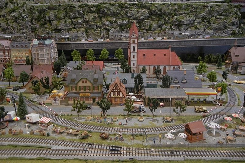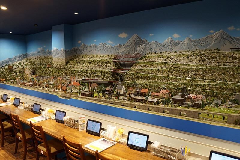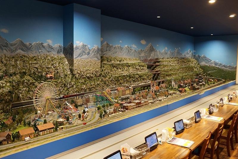 我们在整面墙上创造了逼真的山脉和城市景观。