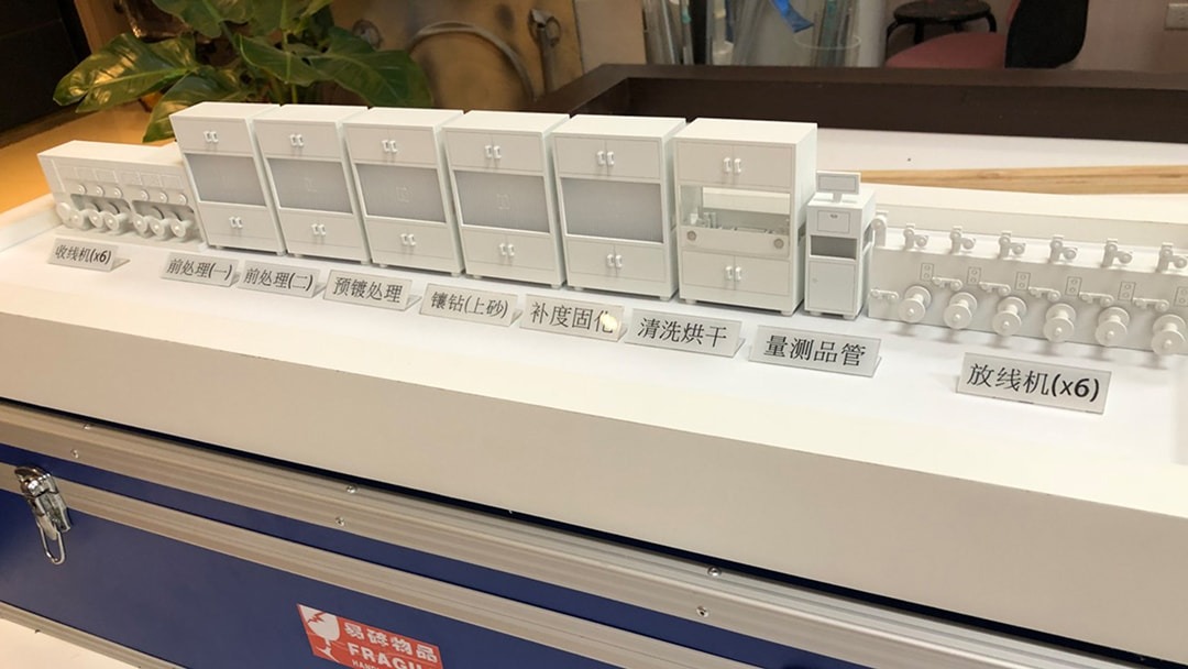 为海外展览模型,客户需求强调完整生产线的每一个环节过程。