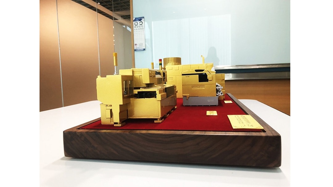 受客户委托特制此模型作为大客户赠送纪念品,铭版为纯金制作,