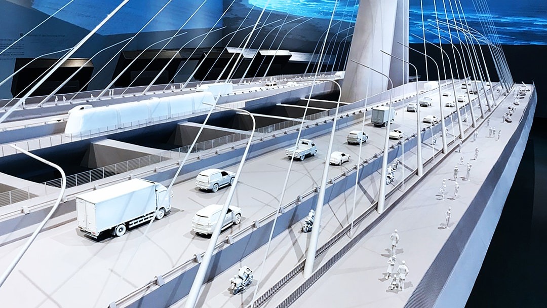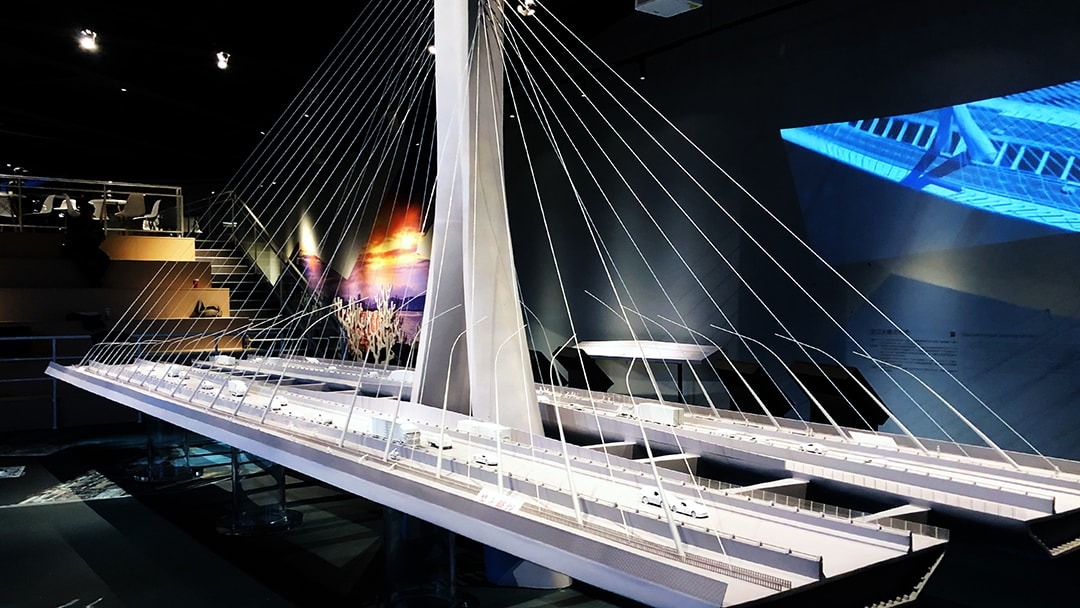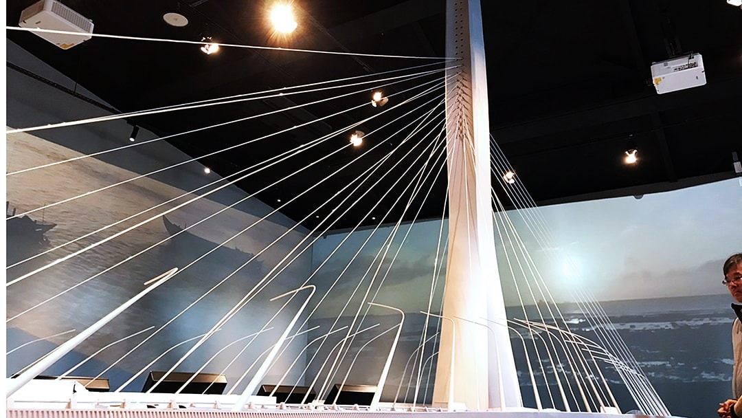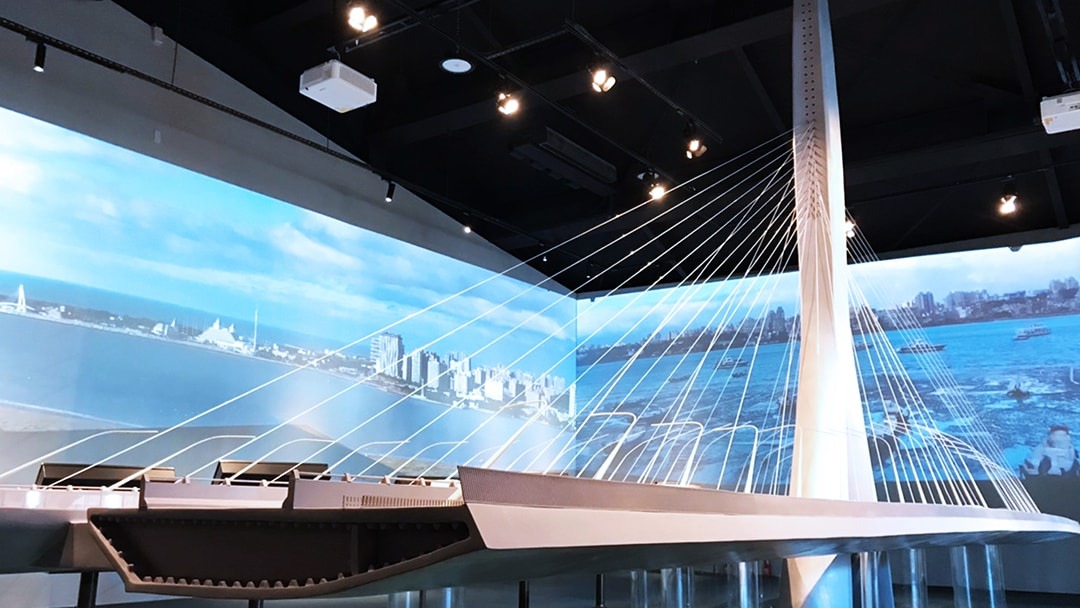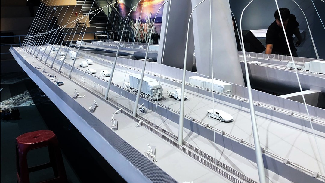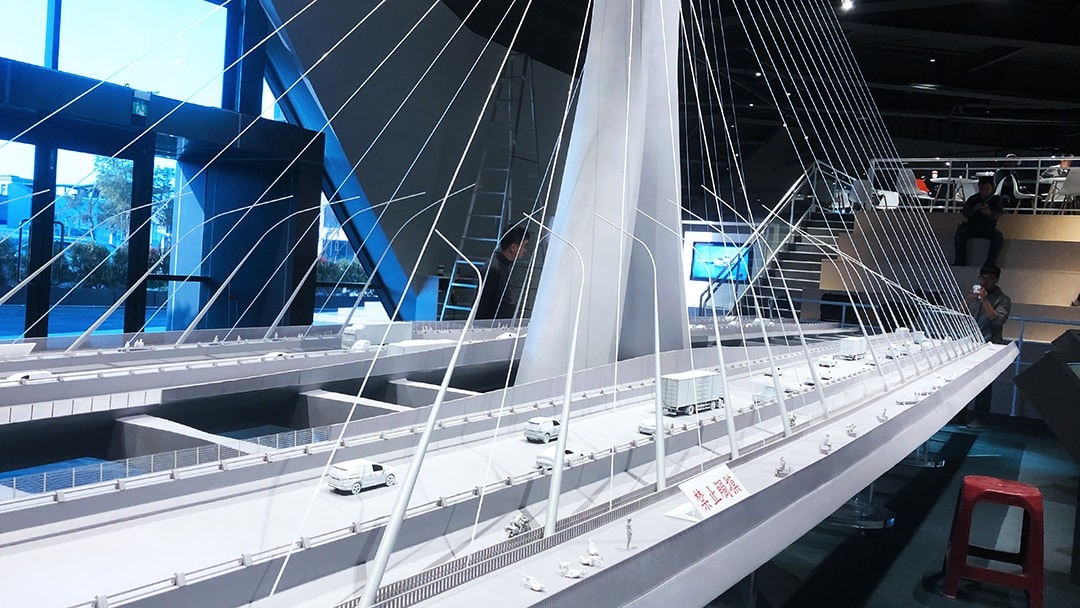 应某路桥公司委托为期公司展馆,制作长约10米高约9米跨江大桥模型,从3D规划到模型制作完成皆由本公司一条龙完成。