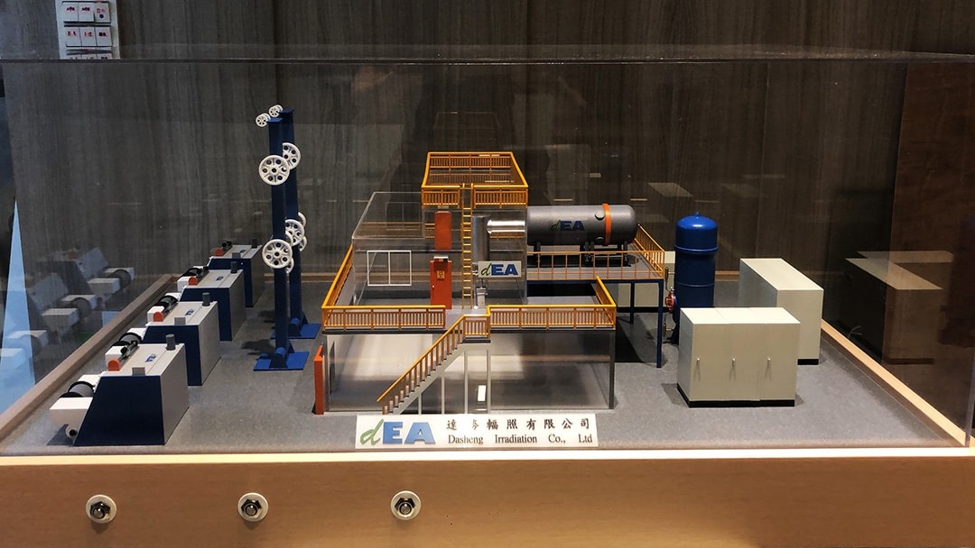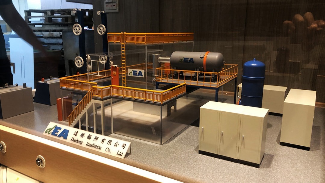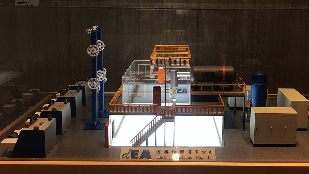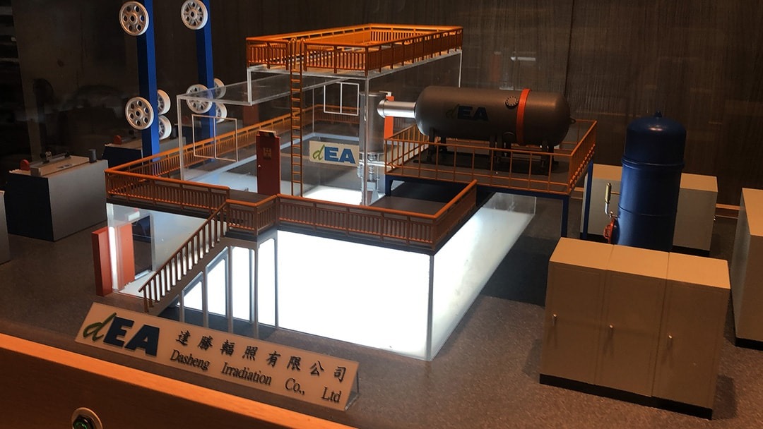 应客户委托将辐照厂缩小于80*60cm大小的展示模型,透过模型可以更了解到厂内摆设及运作的状态。